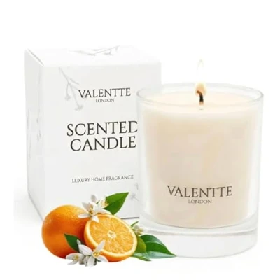 Soy Wax Scented Candle, Aromatherapy Essential Oils, Natural Ingredients, Long Lasting Fragrance, 40 Hours Burning Time, Made in The UK (White Neroli and Lemon, 150g) Valentte
