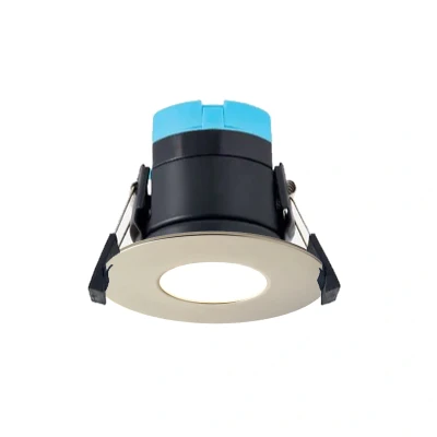 The Spa Rhom is a dimmable 8W LED fire-rated downlight finished in Satin Nickel.Fully fire safe (BS 476-21:1987), tested to 30, 60 & 90 min fire rating, this downlight is designed to retain the integrity of ceiling and subsequent load bearing floors in the event of a fire. Coupled with an IP 65 rating, the LED downlight can be used in bathrooms (zone 1 & 2) as well as kitchens, hallways and offices.Features Fast Fit tool-less terminal for fast and easy installation - Just connect, install, and voila, your downlight is ready to be used.The Rhom is suitable for domestic or commercial applications, and, with its IP65 rating, can be used in bathrooms and other high humidity areas.With an integrated 5W LED module, the Rhom downlight outputs 900 lumens of selectable coloured light. Using the recessed selection switch, choose between 3000K warm white, 4000K cool white or 6000K daylight colour options making this fitting suitable for a host of applications.