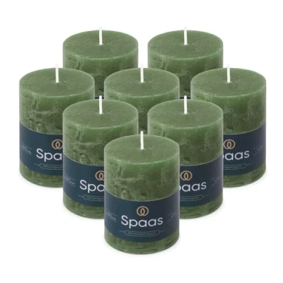 Spaas 8 x Rustic Pillar Candle 70/95 mm 35h, Dark Green