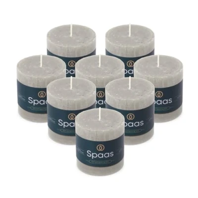 Spaas 8X Rustic Pillar Candle 70/70 mm 25h, Light Grey