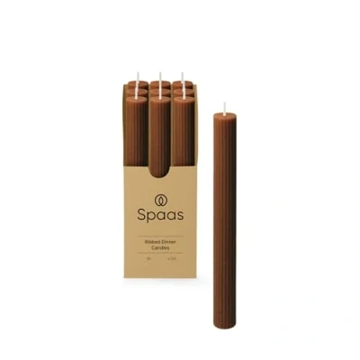 Spaas 9 x Ribbed Dinner Candle 10h, Brown
