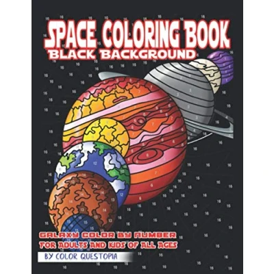 Space Coloring Book Black BACKGROUND Galaxy Color By Number For Adults and Kids of All Ages: Planets Including Rockets, Stars, Spaceships on Pages (Adult Number)