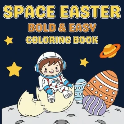 Space Easter Bold & Easy Coloring Book: 50 Simple Astronaut Scenes for Relaxation and Creative Fun Big, Designs All Ages