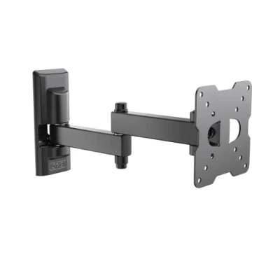 Wall mount with double arm for flat panel TVs from 14''to 25''; VESA supported (in mm): 50x50, 75x75, 100x100 Before purchasing, check the distance between the 4 holes (vesa) on the back of the TV (width x height in mm) Minimum distance from the wall: min 8 cm mx 31.5 cm, load capacity 17 kg, horizontal inclination ±90°, vertical -5° +20° 100% Made in Italy product and TUV certified; 5 years warranty For easy mounting are included: Fischer anchors, level and adjustable screws for most TVs