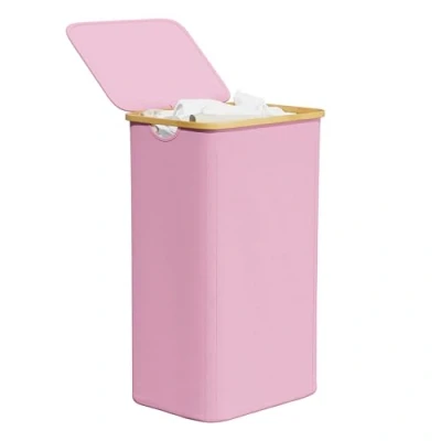 SpaceAid Laundry Hamper with Lid, 110L Large Tall Clothes Basket Bin Bamboo Handles, Collapsible for Bedroom, Bathroom, Dorm, Room Pink