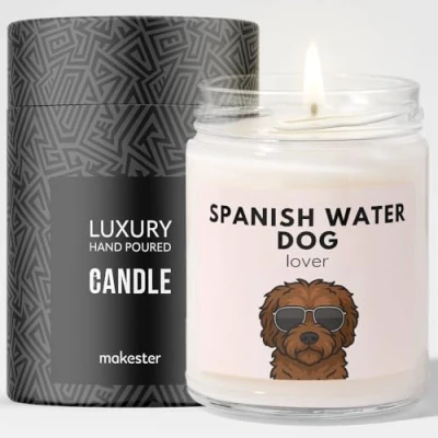 Spanish Water Dog Gift Luxury Soy Wax Candle Vanilla, Jasmine, Sugared Almond Makester