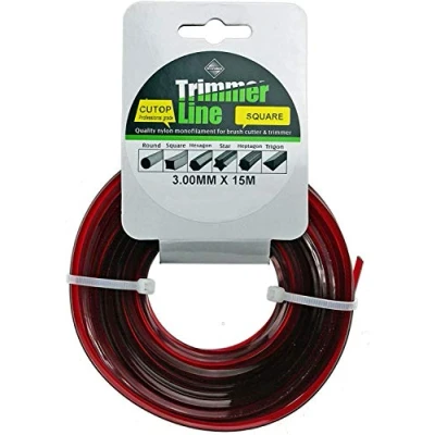 Square 3.0mm Professional Grade High Density Strimmer Line Cord made for SPARES2GO to fit your Outdoor Strimmer, Trimmer or Brush Cutter Specifications: Diameter: 3mm -- Length: 15 metres -- Shape: Square -- Density Grade A - up to 3 times as strong as a general grade strimmer line Fits models: UNIVERSAL - Suitable for a wide range of strimmers, trimmers and brush cutters that accept a 3.0mm diameter line - including: Bosch, Flymo, Ryobi, McCulloch, Stihl, Makita, Husqvarna, Black & Decker and many more... **Please check this 3mm diameter line is suitable for your model before purchase.** This heavy duty 3.0mm SQUARE strimmer line will cut through denser foliage, harsher brush or weed as well as making easier work of your lawn or grass cutting. Every pack is made with the highest density grade nylon - making it suitable for use by the professional landscaper trade and gardeners alike - saving you time and energy by having to change your strimmer line less often.