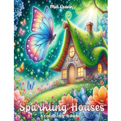 Sparkling Houses Coloring Book: A Whimsical Grayscale Adventure for Adults Stress Relief & Relaxation (Houses Shaped Like Guitars, Flowers, Animals More) (Fantasy Homes Books)
