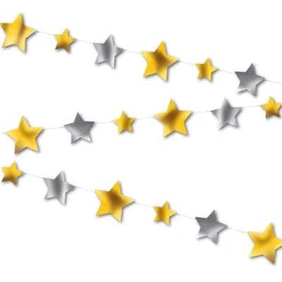 Sparkling Silver & Gold Stars Garland (2.7 Meter Long) 1 Piece Premium Decorative Party Hanging Decoration