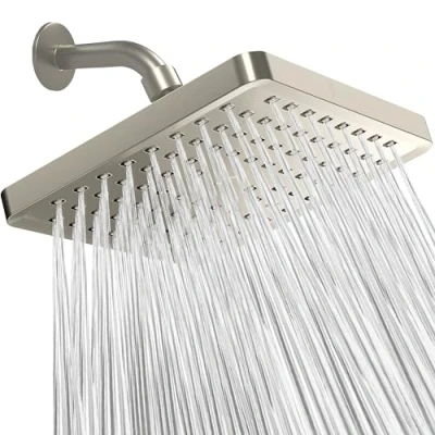 SparkPod Fixed Shower Head High Pressure Rain Luxury Modern Look Easy No Tool Installation Perfect Adjustable Replacement for Your Bathroom Heads (20 cm Square, Elegant Brushed Nickel)
