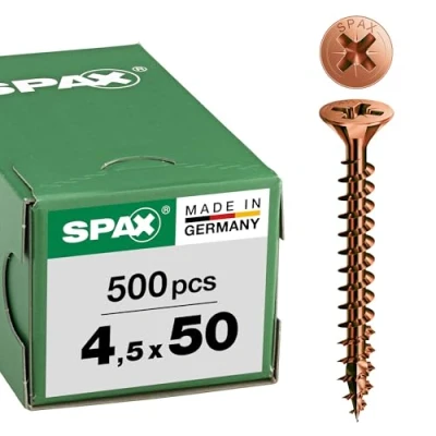 Use: for restoration of dark or antique wooden furniture. Brownish colour due to burnishing. For indoor use only As a multi-head pronounced countersunk head for flush countersinking and comfortable processing, milled in wood, brakes on metal. Optimum power transmission and clean fit with Phillips blade size Z2 Effortless work and longer battery life: no pre-drilling (depending on the wood). Easy penetration, reduction of the splitting effect thanks to 4CUT: Four edges in the screw tip. Easier cutting of the wood fibre thanks to Spax wave profile Made in Germany – approved by building authorities: European technical approval for screws as wood fasteners in load-bearing wooden constructions (ETA-12/0114), Weight: 4.12484892202 pounds, Manufacturer: SPAX International GmbH & Co. KG