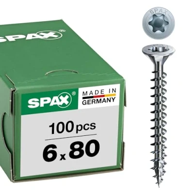 Use: Universal indoors and outdoors without direct exposure to weather. Exclusive SPAX WIROX coating: corrosion resistance 20 times higher than conventional white zinc required by the standard MULTI countersunk head: easy penetration and simplified screwing. Burr in the wood and brake on the metal. Optimal force transmission and better setting on the tip even when working over the head, thanks to the T-STAR plus guide bolt Power and battery saving: no need for forehole (depends on wood) Reduces cracks in wood with the 4CUT four-sided nib. Typical SPAX wavy profile for easy separation of wood fibres Made in Germany: TÜV certified Official accreditation: European technical accreditation for self-tapping screws as assembly components for wood (ETA-12/0114). Contents: 1 x SPAX, T-STAR plus box, countersunk head, total thread, 4CUT tip, WIROX coating, nozzle not included, Weight: 2.09218686638 pounds, Manufacturer: Spax