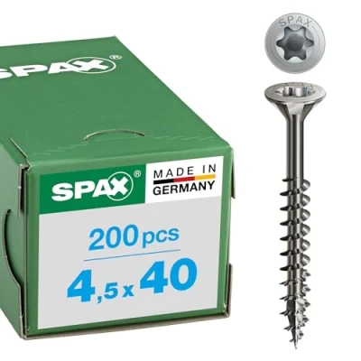 Selectable sizes / lengths (D x L) 3.5 mm x 25 mm, pack of 200.(item no. 751450); size: 3.5 mm x 30 mm, pack of 200.(item no. 751451); size: 3.5 mm x 40 mm, pack of 200.(item no. 751453); 4.0 x 25 mm pack of 200.(item no. 751454); 4.0 x 30 mm pack of 200.(item no. 751455); 4.0 x 40 mm pack of 200.(item no. 751457); 4.0 x 50 mm pack of 200.(item no. 751459); 4.0 x 60 mm pack of 100(item no. 751460)., Weight: 1.1904962148 Pounds, Manufacturer: SPAX