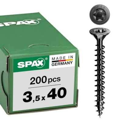 Good look for dark fittings or furniture restoration A real eye-catcher: thanks to the black zinc plating (A2T), these universal screws are suitable for use in decorative furniture construction when using dark/antique woods or dark furniture/metal fittings Easy, quick and secure screwing: thanks to the perfect fit and optimal power transmission of the bit; with the T-Star plus force attack, work is also possible overhead Energy-saving work: thanks to the 4CUT tip, pre-drilling is usually unnecessary and the splitting effect is reduced; the wave-shaped thread of the SPAX allows quick and secure screwing and saves battery performance Full thread for heavy-duty connections: thanks to the high number of thread turns, the highest tensile and compressive forces are absorbed; the load is evenly distributed from the tip to the head, Weight: 0.7054792384 pounds, Manufacturer: Spax