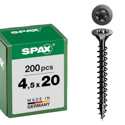 Good look for dark fittings or furniture restoration A real eye-catcher: thanks to the black zinc plating (A2T), these universal screws are suitable for use in decorative furniture construction when using dark/antique woods or dark furniture/metal fittings Easy, quick and secure screwing: thanks to the perfect fit and optimal power transmission of the bit; with the T-Star plus force attack, work is also possible overhead Energy-saving work: thanks to the 4CUT tip, pre-drilling is usually unnecessary and the splitting effect is reduced; the wave-shaped thread of the SPAX allows quick and secure screwing and saves battery performance Full thread for heavy-duty connections: thanks to the high number of thread turns, the highest tensile and compressive forces are absorbed; the load is evenly distributed from the tip to the head