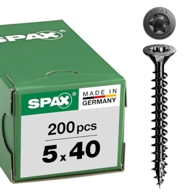 Good look for dark fittings or furniture restoration A real eye-catcher: thanks to the black zinc plating (A2T), these universal screws are suitable for use in decorative furniture construction when using dark/antique woods or dark furniture/metal fittings Easy, quick and secure screwing: thanks to the perfect fit and optimal power transmission of the bit; with the T-Star plus force attack, work is also possible overhead Energy-saving work: thanks to the 4CUT tip, pre-drilling is usually unnecessary and the splitting effect is reduced; the wave-shaped thread of the SPAX allows quick and secure screwing and saves battery performance Full thread for heavy-duty connections: thanks to the high number of thread turns, the highest tensile and compressive forces are absorbed; the load is evenly distributed from the tip to the head, Weight: 1.5873282864 Pounds, Manufacturer: Spax