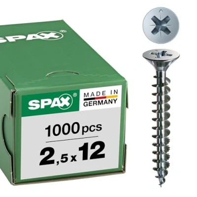 Spax Universal Screw Countersunk Head Phillips Z 4Cut Full Thread Galvanised Blank A2J 1081010350123, 0/1030/001/2,5/12/ /01