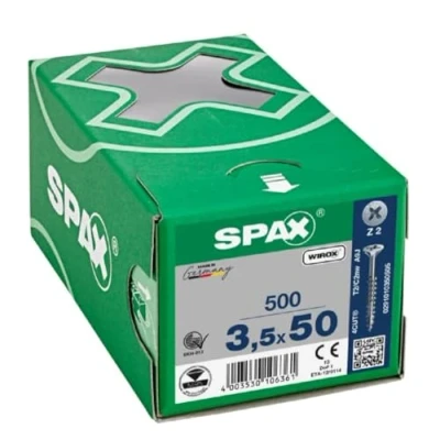 Use: Universal for indoor use. SPAX-exclusive WIROX surface: 20 times higher corrosion protection compared to conventional blank zinc plating than required by standard. Multi-head, countersunk head for flush entry and comfortable processing, wood-milling, brakes on metal. Optimal power transmission and clean seating thanks to cross recess (blade size Z2). Effortless work and longer battery life: Without pre-drilling (depending on the wood). Easy penetration, reduced gap effect due to 4CUT: Four edges in the screw tip. Easy spinning movement thanks to Spax Wood fibre Wave profile. Made in Germany - approved for use in construction European Technical Approval for Screws as Wood Fasteners in Load-bearing Timber Structures (ETA-12/0114), Weight: 2.20462262 Pounds, Manufacturer: Spax