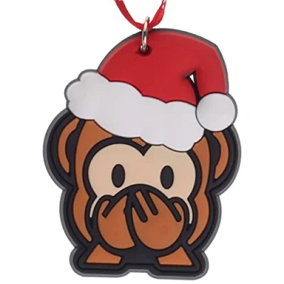 Speak No Evil Monkey Emoji Hanging Christmas Tree Decoration Silicone Ornament Novelty Bauble Stocking Filler Secret Santa Colourful Multicoloured Small Gift Funny