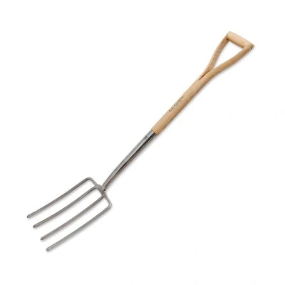 General description The Spear and Jackson Kew Stainless Digging Fork 1560KEW features a mirror-polished stainless steel head that effortlessly penetrates the soil, making it ideal for digging and breaking up soil. Its rust-resistant properties and easy-to-clean surface enhance its usability and longevity. Technical specifications Material: Mirror-polished stainless steel head Handle: FSC® certified wooden split YD weather-proofed ash Design: Extra long socket with double riveting for added strength Function: Reduces bending to minimize back strain