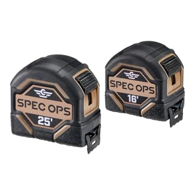 Spec Ops Tools 16 Foot & 25 Tape Measure Tool Set, 1 1/4" Double Sided Blade, Military Grade Composite Case, 3% Donated to Veterans