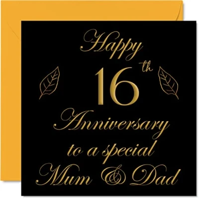 Special 16th Anniversary Card for Dad Mum Parents & Happy 16 Wedding Cards from Son Daughter Family, 145mm x Greeting Sixteenth Anniversaries