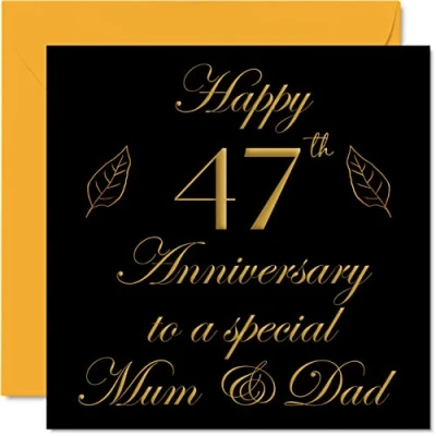 Special 47th Anniversary Card for Dad Mum Parents & Happy 47 Wedding Cards from Son Daughter Family, 145mm x Greeting Forty Seventh Anniversaries