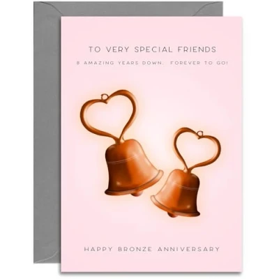 Special Friends 8th Anniversary Card Bronze Wedding Hearts Design A5 Size with Grey Envelope