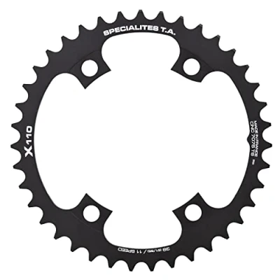The X110 chainrings are compatible with the Shimano Dura Ace 9000/R9100, Ultegra 6800/8000 and 105 5800/R7000 11 speed chainsets For complete compatibility you must replace both inner and outer with TA rings Chainrings are designed to be compatible with the modern chainsets that have a cutout on one arm, they are also backwards compatible with the earlier chainsets that do not have the cutout PCD: 110mm (4 Bolt) Material: 7075 T6 Aluminium