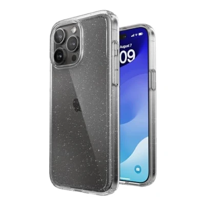 Speck Clear iPhone 15 Pro Max Case Slim, Drop Protection Scratch Resistant, Anti Yellowing, 6.7 Inch Phone GemShell Clear/Platinum Glitter