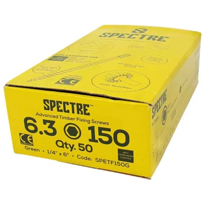 Spectre Timber Fixing Screws 6.3 x 87mm Ruspert, Green Box 50