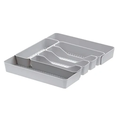 INNOVATIVE HEXOLOGY: Hexa’s innovative design keeps your kitchen drawers clean. Dirt and crumbs fall through the open hexagons, keeping contents cleaner. Shake the tray, remove it from the drawer, and wipe up the dust that was left behind. 7 SECTIONS FOR SILVERWARE: Four vertical compartments keep cutlery organized. Bonus compartment along the bottom is perfect for kitchen accessories, such as wine corkscrews, bottle openers, vegetable peelers, spatulas or kitchen utensils. Expand to add 2 additional compartments EXPANDABLE TRAY: Expandable wings are anchored in place with the interlocking hex design. Pegs on the wings fit into the open hexagons of the base of the silverware tray to lock the wings into place. Expand wings as much or as little as you need. ORGANIZE CUTLERY: Straighten up kitchen drawers with this compact silverware tray. Keep cutlery in separate compartments to organize the forks, spoons and knives. Open hexagon base allows dirt and dust to fall through, keeping your cutlery cleaner. DURABLE CONSTRUCTION: Sturdy base sits evenly in kitchen drawers. Durable plastic construction supports the weight of utensils, flatware, and cutlery. The base distributes weight evenly to eliminate tipping, and the silicone feet prevent sliding inside the drawer.