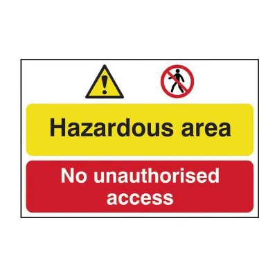 Spectrum Industrial 4025 Hazardous Area No Unauthorised Access Safety Sign, Self Adhesive Semi Rigid PVC, 600mm x 400mm, Multi Colour, 600 400 mm