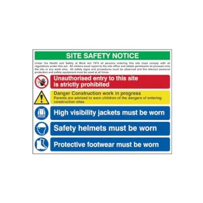 Essential Safety Compliance - Displays 5 key safety points for construction sites, helping meet UK health & safety regulations. Premium Quality Foamex Board - Made from 3mm Foamex, offering strength, rigidity, and long-lasting durability. Large & Highly Visible - Size 800mm x 600mm ensures maximum visibility for workers and visitors. Weatherproof & UV Resistant - Designed for outdoor use in all conditions without fading or warping. Quick & Easy Installation - Lightweight yet sturdy board can be mounted on wall, fences, or posts using screws or adhesive.