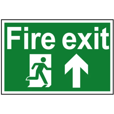 General description This fire exit sign features a clear and easily recognizable running man symbol with an upward arrow, indicating the direction of the emergency exit. Made from durable 1mm thick PVC, it is designed for long-lasting visibility and safety compliance. Technical specifications Material: PVC Size: 300 x 200mm Thickness: 1mm Color: White and Green with white symbol/text Printing: UV resistant inks to prevent fading Compatibility and accessories Suitable for application on smooth, dry surfaces Self-adhesive backing with aggressive water-based adhesive for secure attachment Installation Ensure the surface is clean, dry, and smooth before applying the sign Peel off the backing and press firmly onto the desired location Usage Place the sign in visible locations near exits to guide occupants during emergencies Ensure the sign remains clean and unobstructed for maximum visibility Other information Complies with BS5499 and/or ISO 7010 design criteria where applicable Helps