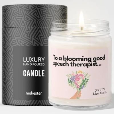 Speech Therapist Gifts Luxury Soy Wax Candle Vanilla, Jasmine, Sugared Almond Makester