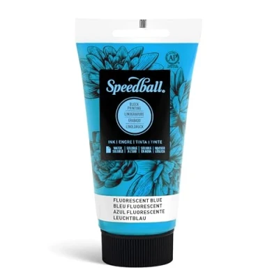 Speedball 75ml 2.5oz Water Soluble Block Ink Fluorescent Blue, for Printing, Lino, Screen Artists Kit
