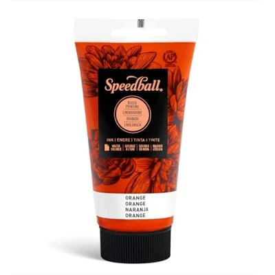 Speedball 75ml 2.5oz Water Soluble Block Ink Orange, For Printing, Lino Screen Artists Kit