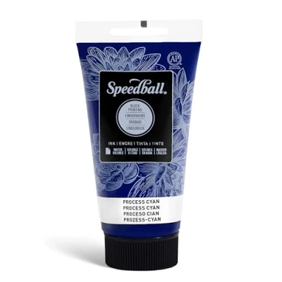 Speedball 75ml 2.5oz Water Soluble Block Ink Process Cyan for Printing, Lino Screen Artists
