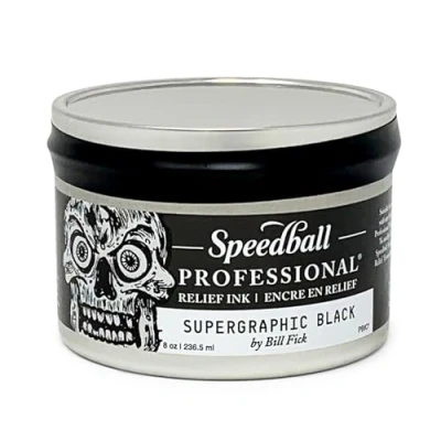 Go CraftSpeedball Professional Relief Ink - Supergraphic Black (236ml/8oz) is a premium, oil-based ink formulated for exceptional detail and rich, deep blacks in relief printmaking. Designed in collaboration with master printmaker Bill Fick, this high-quality ink delivers bold, consistent results with smooth application.. Supergraphic Black: Intense, deep black for striking, high-contrast prints.. Professional-Grade Formula: Provides excellent coverage and crisp line definition.. Rich, Buttery Consistency: Rolls out smoothly for even ink distribution.. Extended Open Time: Stays workable longer for easy manipulation and blending.. Ideal for Relief Printing: Perfect for linocut, woodcut, and other block printing techniques.. For artists and printmakers seeking superior quality and rich black tones, Speedball Professional Relief Ink - Supergraphic Black is the perfect choice for achieving bold, professional-grade prints.