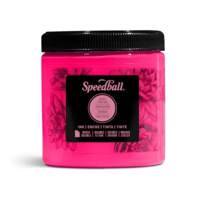 Speedball 8oz Water Soluble Block Ink Fluorescent Hot Pink, for Printing, Lino Print, Screen Artists Kit
