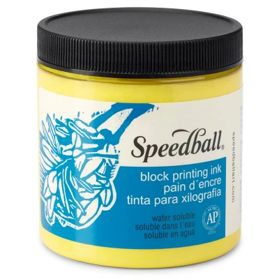 Speedball Water Soluble Block Printing Ink 8oz Yellow, Waterproof Relief Ink, Lino, Wood, Soft Block, Printing, Artist Art Tool Kit Accessories, Set
