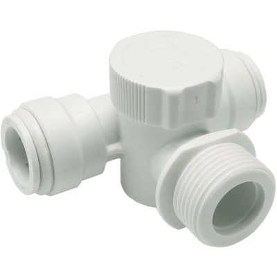 General description The John Guest Speedfit Appliance Tee 15mm X 3/4' (Pack of 5) allows for the isolation of appliances such as washing machines or dishwashers, making maintenance and installation straightforward. This fitting is designed for quick connections to the water supply and features an integrated 1/4 turn shut-off valve for ease of use. Technical specifications Size: 15mm X 3/4' Material: Plastic with stainless steel teeth Type: Push-fit fitting Suitable for: Hot and cold water (not for central heating systems) Compatibility and accessories Compatible with Speedfit PEX and polybutylene plastic pipe (inserts required) Compatible with copper pipe Installation Push the fitting fully onto the pipe Thread the appliance hose onto the valve To demount, pull the collet towards the body and pull the pipe to release Installation is quick and does not require tools Usage Ideal for connecting appliances to the water supply Allows for safe, flame-free installation without hot works,