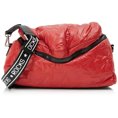 Soft padded handbag Embossed star motif Heavy duty zipper Large main compartment Wide branded carrying strap