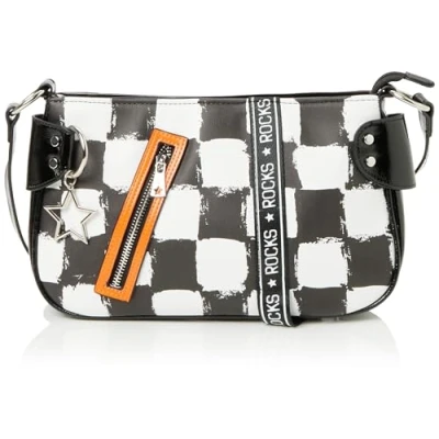 Faux leather shoulder bag Slanted zip on the front Sewn-on logo band Silver Star Pendant With rivets