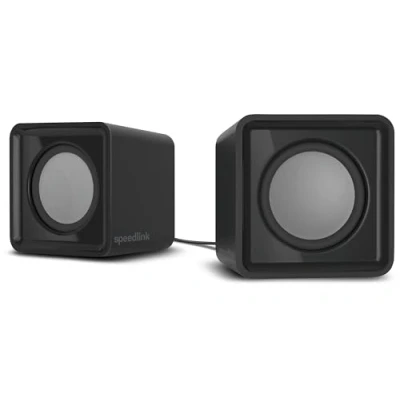 SPEEDLINK SL 810004 BK Twoxo Stereo Compact Cube designed USB Powered 5W Speakers 3.5mm jack for use with PC, tablet or smartphone Multimedia sound music, games and video Black