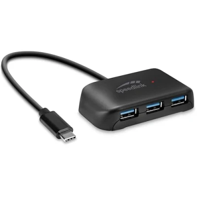 Speedlink SNAPPY EVO 4 Port USB hub passive C 3.1 Gen 1 with 3x A and 1x for fast data transfer at up to 5 Gbit/s, connection via C, black
