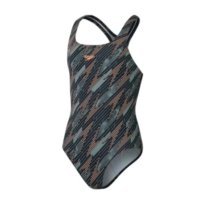 Speedo Girls Hyperboom Allover Medalist Swimsuit for kids, Size: 5 6y, Black/country green/nectarine