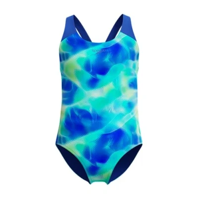 Speedo Girls Print Splashback Swimsuit Swimming Costume Mayan Blue/Deep Sapphire Size 11 12 Years