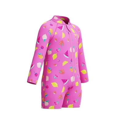 Speedo Kids Unisex Long Sleeve Print Zipped One Piece Swimsuit, Pink, 3 Years